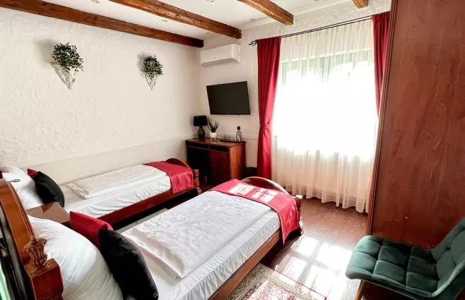 Im mit viel Grün bepflanzten ruhigen Stadtteil, erleben Sie Ihren Aufenthalt in Györ auf angenehmste Art. Alle Zimmer in der Pension Tio Pepe sind mit Dusche, WC, Sat-TV, Telefon und einer Minibar ausgestattet.